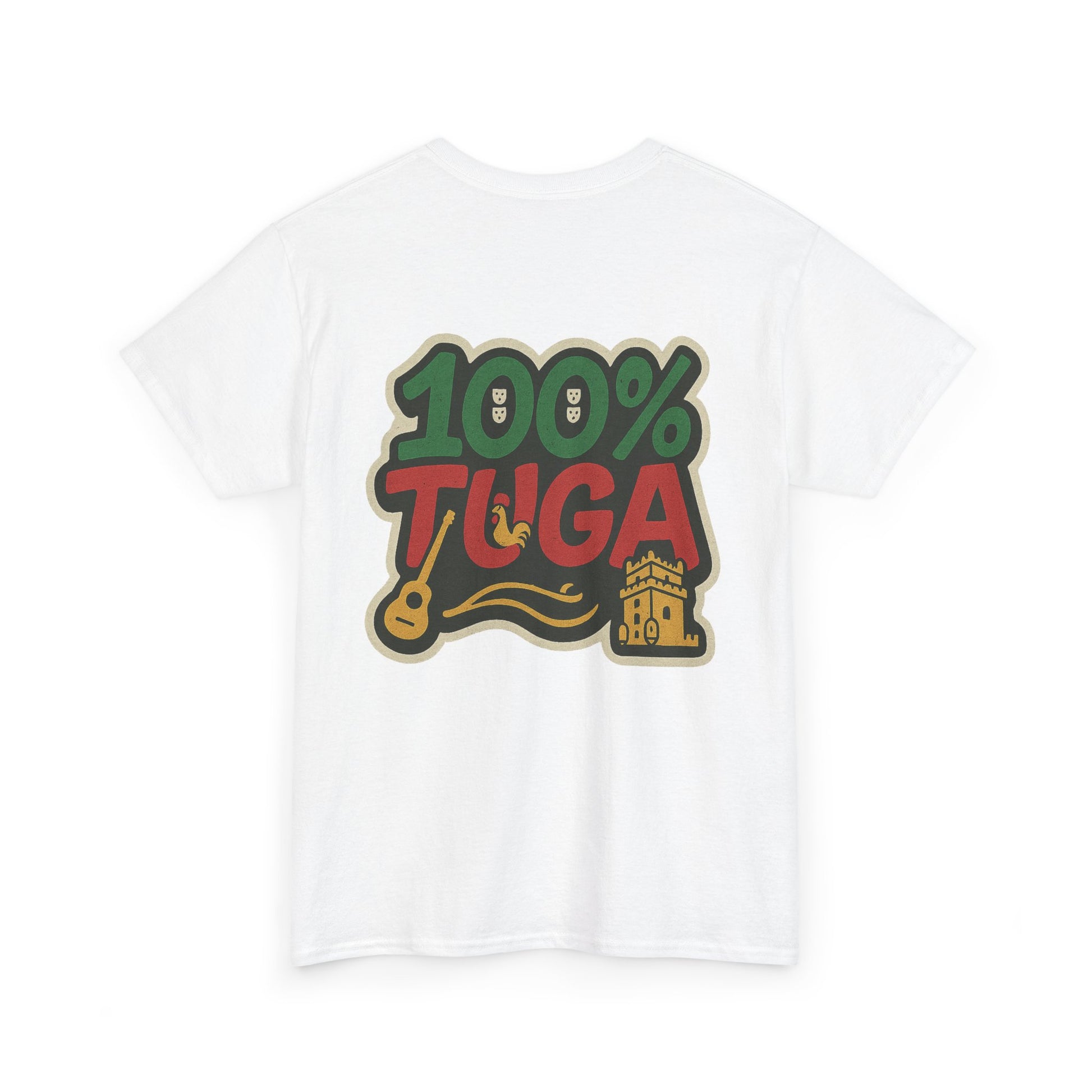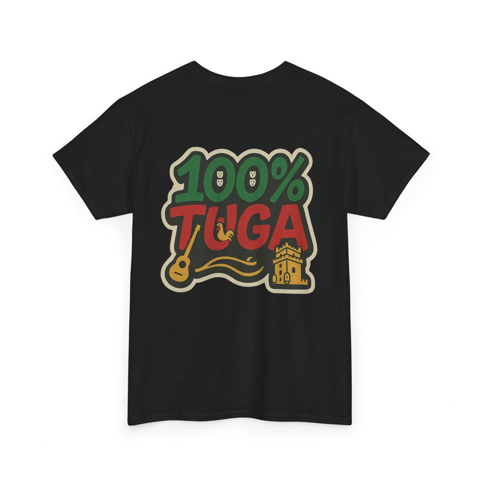 Mostra o orgulho português com um design streetwear cheio de personalidade: tipografia ousada nas cores da bandeira e detalhes icónicos (guitarra, galo e torre) integrados no grafismo.